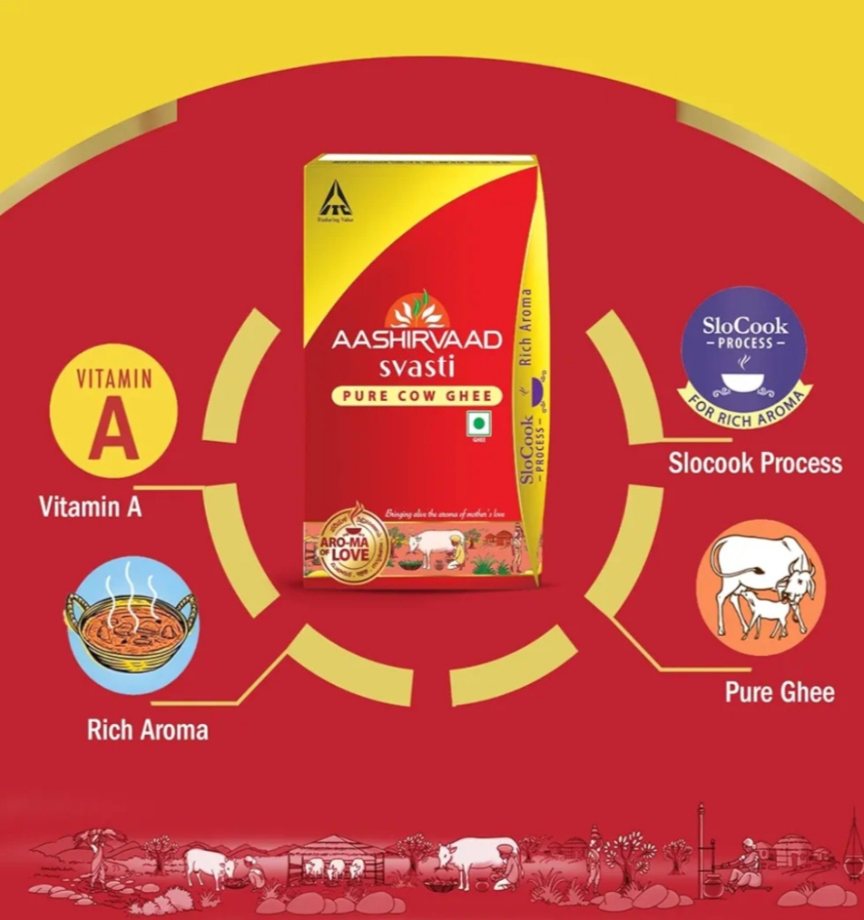 Aashirvaad Svasti Pure Cow Ghee is a premium ghee made with a special SloCook process