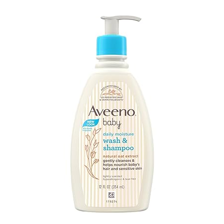 Aveeno Baby Daily Moisture Wash and Shampoo (354ml) | Cleanses hair & body | Oat kernel extract & glycerin | Tear-free, soap-free, paraben-free, hypoallergenic | US #1 Pediatrician recommended