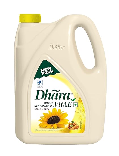 Dhara Refined Sunflower Oil 5L (4.55Kg, Weight May Vary)